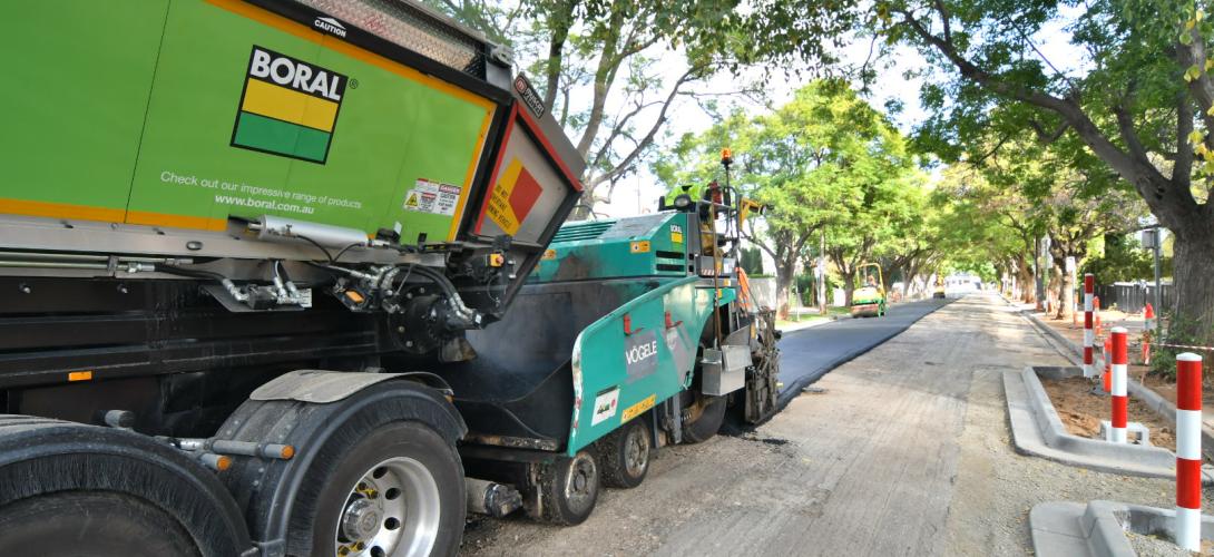 Boral resurfaced Carlisle Road in Westbourne Park for the City of Mitcham in April 2020 with a mix containing about 150 tonnes of recycled asphalt pavement and the equivalent of about 450,000 600ml plastic bottles, which laid end-to-end these bottles would stretch 60 kilometres. The project’s sustainability credentials were enhanced with the inclusion of recycled aggregate in the concrete used to build new kerbing.