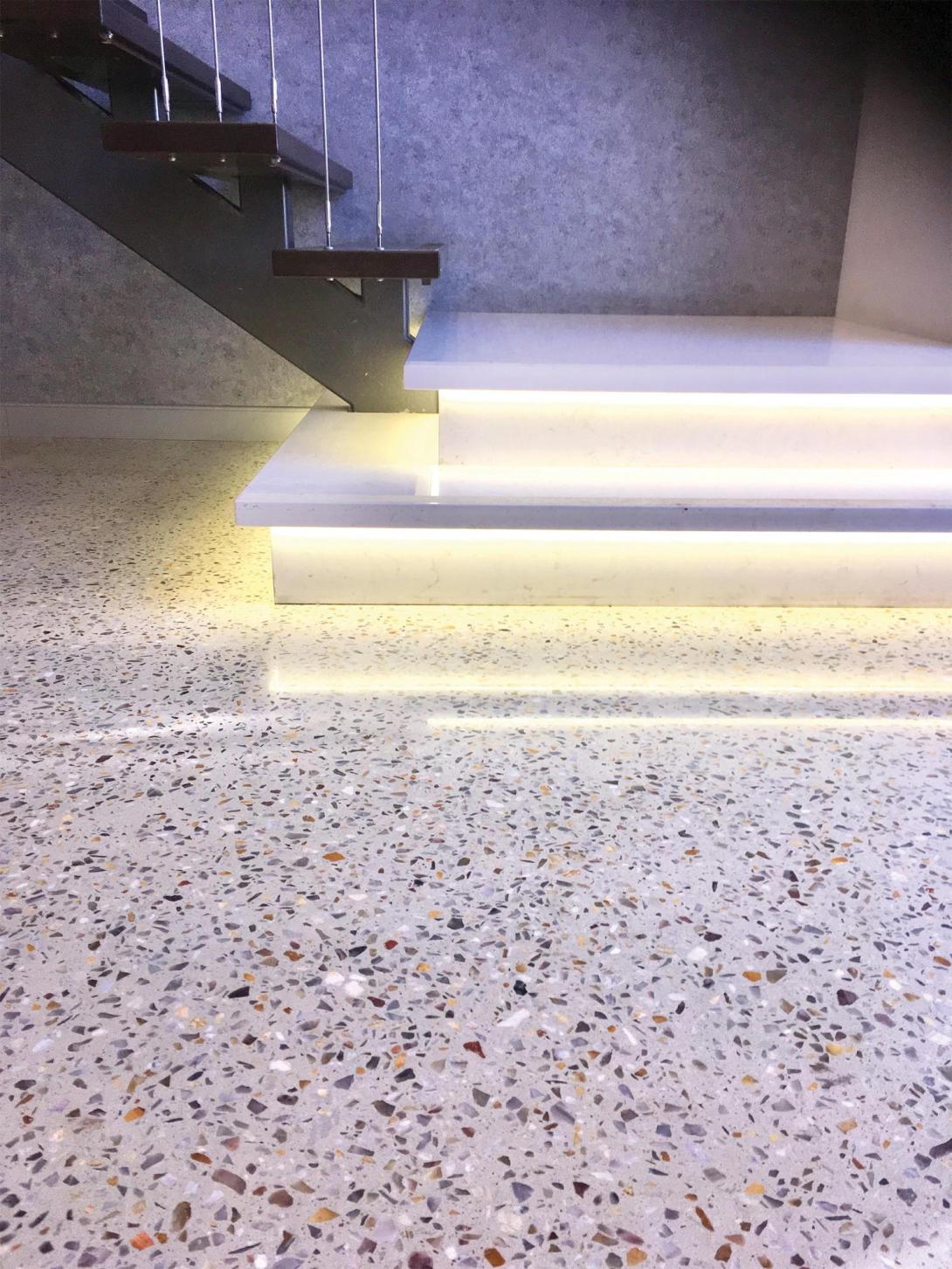 Polished concrete is suitable for internal floors and countertops in homes, offices, retail spaces, and public buildings. Honed and burnished finishes are ideal for external areas such as patios, walkways, garages and entryways. It can also be used in wet areas like bathrooms and laundries when sealed appropriately.
