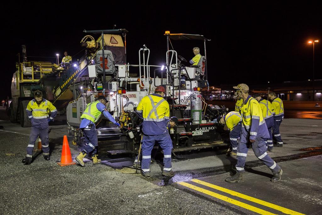 Boral resurfaced Sydney Airport's main and cross runways during an eight-month period in 2010-11. This involved removing existing asphalt and laying fresh material during flight curfew hours.